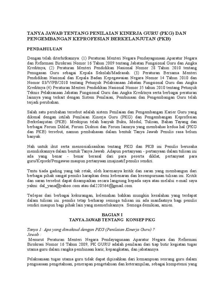 Berikut daftar pertanyaan dan jawaban seputar penilaian kinerja guru (pkg) dan penilaian prestasi kerja (ppk): Mintohardjo tahun 2009 identitas responden nama : Penilaian kinerja guru bermanfaat bagi guru dalam rangka peningkatan kualitas kinerjanya secara berkelanjutan dan sekaligus pengembangan karir profesinya. Setelah anda mendapat gambaran kasar tentang posisi anda, saatnya untuk mengajukan pertanyaan khusus anda sendiri. Kunci rahasia karyawan mencapai kinerja terbaik sepanjang karir.